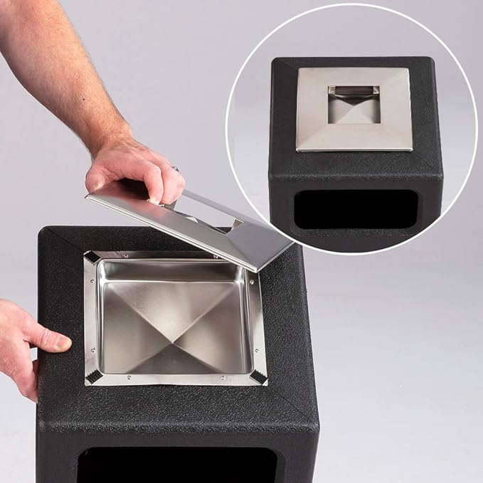 - BLENDS IN NATURALLY. Canmeleon Outdoor and Indoor Recessed Panel Trash Can with Ash Urn blends decorative fluted panels with a stainless steel ashtray to help enhance outdoor areas while keeping them clean and litter free.