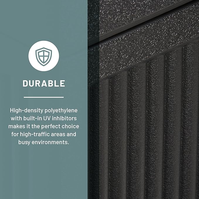 - Outdoor and Indoor USE. Molded from high-density polyethylene with UV inhibitors, this waste container performs well in both outdoor and indoor conditions. Telescoping base hides liner bag and includes a recessed bottom for easy maintenance.
