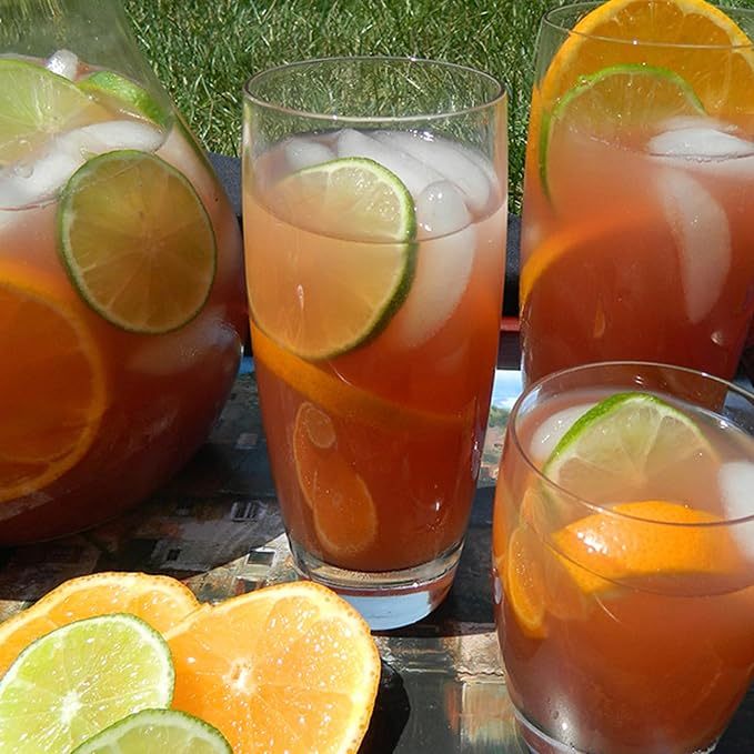 - Set of 4 Cooler Glasses: With a large 20 oz capacity, these beverage glasses are ideal for serving water, iced tea, lemonade, and other refreshing drinks. Their crystal-clear design adds a touch of elegance to any setting, making them perfect for both everyday use and special occasions.