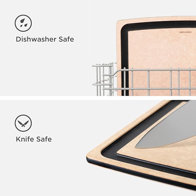 - Made in the USA from Richlite paper composite material; natural material is lightweight, durable, nonporous, knife friendly and easy to maintain
