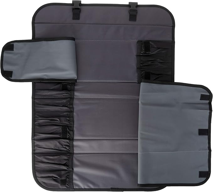 - SUPERIOR DESIGN: Includes business card/ID holder, exterior zippered pocket, 10 elastic pockets with hook-and-loop tabs to hold knives and tools, two snap locks for secure closure, and an adjustable, detachable shoulder strap for comfortable carrying