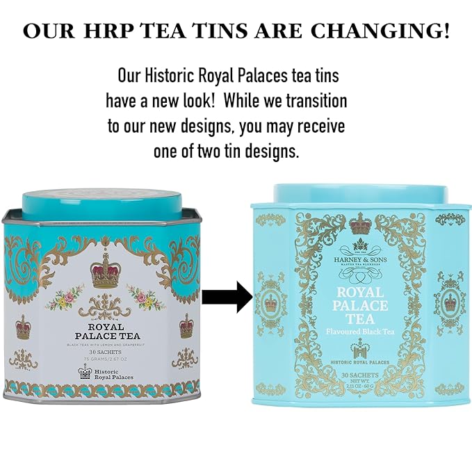 Harney & Sons Royal Palace Tea | Black Teas with Lemon and Grapefruit Flavors, 30 Sachets, Historic Royal Palaces Collection (Tin Design May Vary)