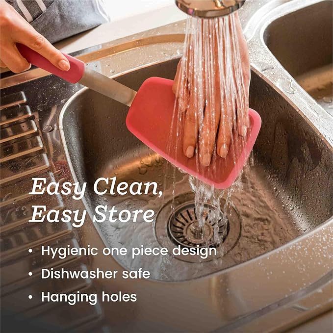 - Flex & Flip Large Flex Spatula Turner 13.1” x 3.9”: Easy clean and dishwasher safe, for increased longevity just wipe clean in soapy water as food just slides right off