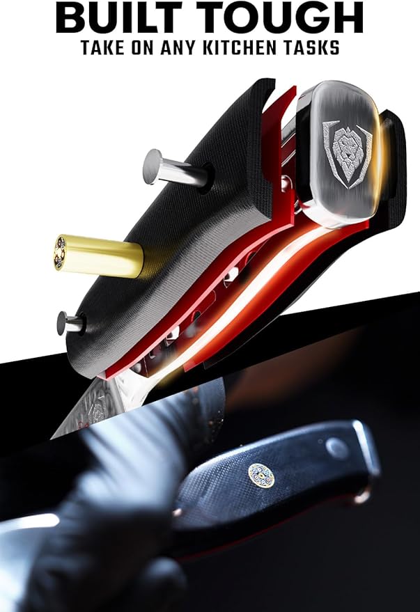 - A Chef Knife Engineered to Perfection: The ultra-G10 handle is military grade with long durability. Carefully hand polished, the ergonomic handle shape is engineered for hand control, agility and comfort. Hand-polished blade spine for smooth handling