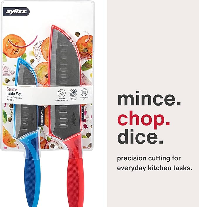 ZYLISS 2 Piece Santoku Knife Set with Sheath Covers, Stainless Steel