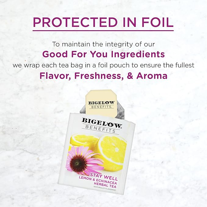 Bigelow Benefits Stay Well Lemon and Echinacea Herbal Tea, Caffeine Free, 18 Count (Pack of 6), 108 Total Tea Bags