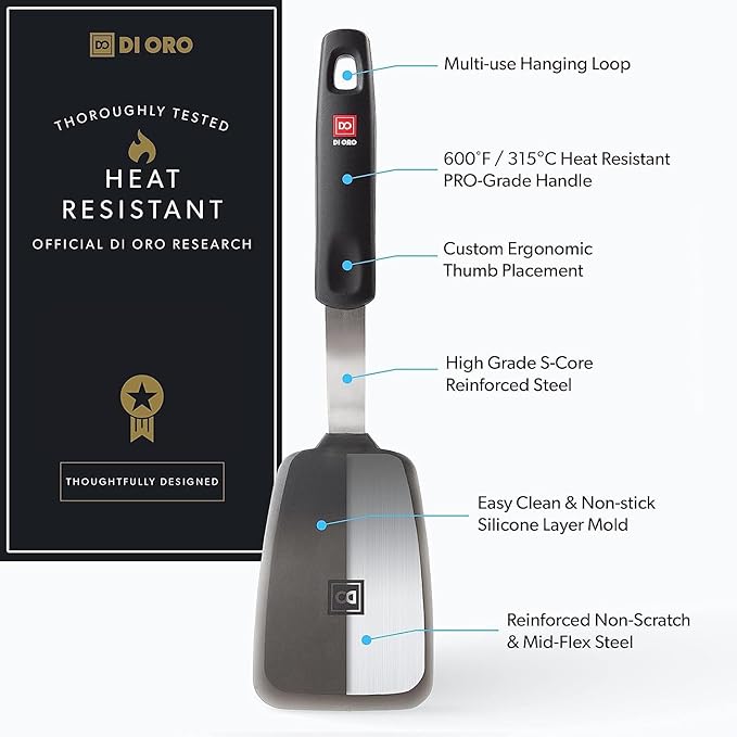 - FOREVER WARRANTY - Trust in our DI ORO Designer Series Classic Turner Spatula with a forever warranty and 100% US-based customer support. Choose DI ORO and invest in kitchen tools that will last you a lifetime.