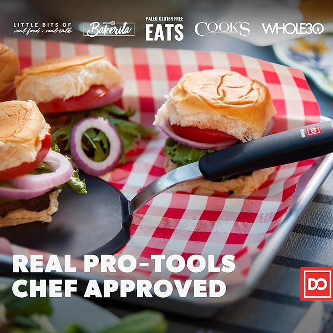 - PROTECT YOUR COOKWARE IN STYLE - The DI ORO Designer Series Pancake Silicone Turner Spatula features a stainless steel core that offers the perfect balance of strength and flexibility, ensuring that your non-stick cookware remains scratch-free. The thin and flexible edge makes it easy to slide under food without damaging delicate surfaces, while the rounded corners make it perfect for scraping the sides of pans.