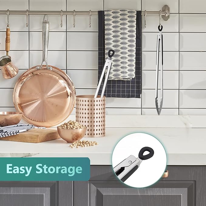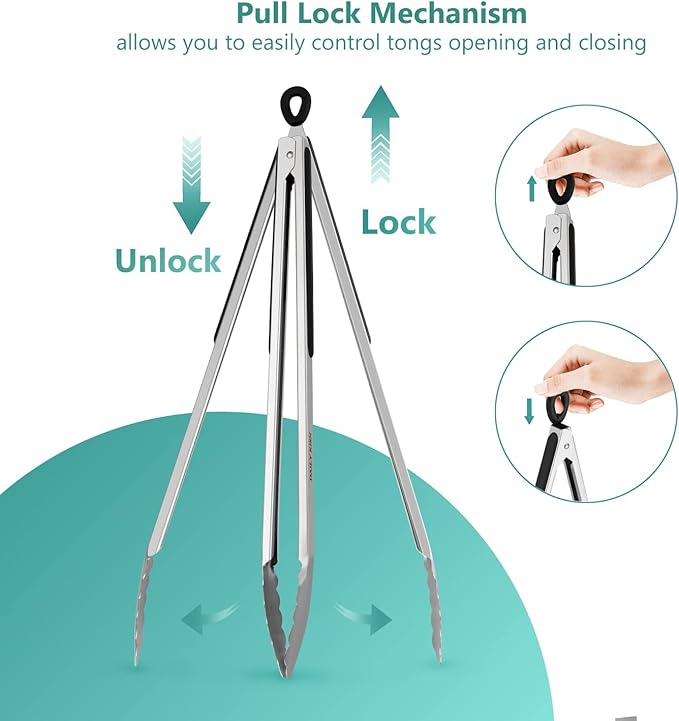 - Easy to Use and Store: The pull-ring locking mechanism ensure the tongs won't accidentally open or close while you're using them, giving you better control over your cooking. They can also be conveniently dried and stored.