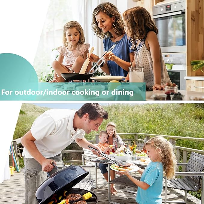 - Premium Stainless Steel Tongs: These long grill tongs are made of food-grade heavy-duty stainless steel, with anti-rust brushed surfaces. They are safe and durable for food contact.