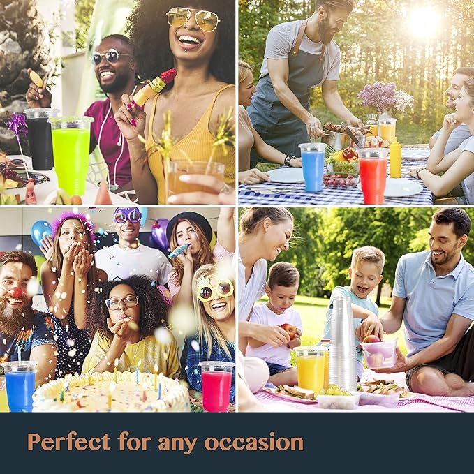 - 32 OZ Cups and Lids - 50 Pack - Extra large tall plastic to go cup drinkware for milkshakes or boba tea