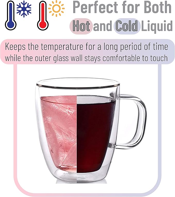 - The double-walled construction of these mugs ensures insulation to maintain the temperature of your drinks and presents a captivating illusion of your drink floating inside.