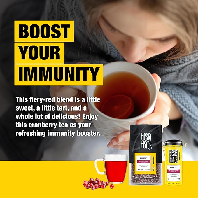 Tiesta Tea - Fireberry Cranberry Hibiscus Loose Leaf Tea, Premium Caffeine-Free Rooibos Blend, Brew Hot or Iced, Makes Up to 250 Cups, 16oz Bulk Pouch & 5oz Refillable Tin Set