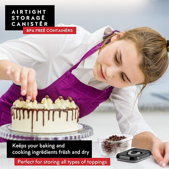 - Gives An Elegant Look On The Counter: With beautiful black lids and a clear body, the rectangular plastic airtight container canister set spruces up your kitchen while allowing you to easily monitor the contents. It is also stackable to take full advantage of vertical space for your cabinet and pantry organization.