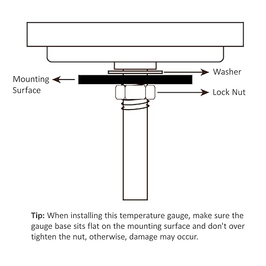 - ✅ [ Easy to Install ] - Simply insert the stem through the hole on your grill, and attach the washer and lock nut included. Do NOT turn the thermometer during installation, we suggest to tighten the nut with a wrench, or damage may occur.