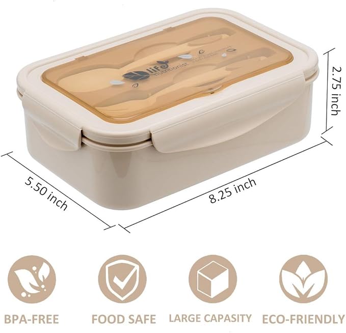LOVINA Bento Box for Adults and Kids - 1400ML Portable, Lightweight, Easy to Carry Meal Holder with Spoon & Fork, Durable, Leak-Proof, BPA-Free and Food-Safe Materials