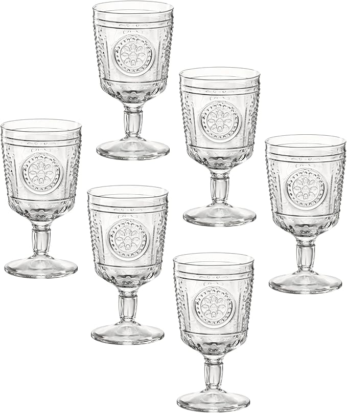 Bormioli Rocco Romantic (Set Of 6) Stemware Glasses, 10.75 Oz. Clear Crystal Glass, Made In Italy.