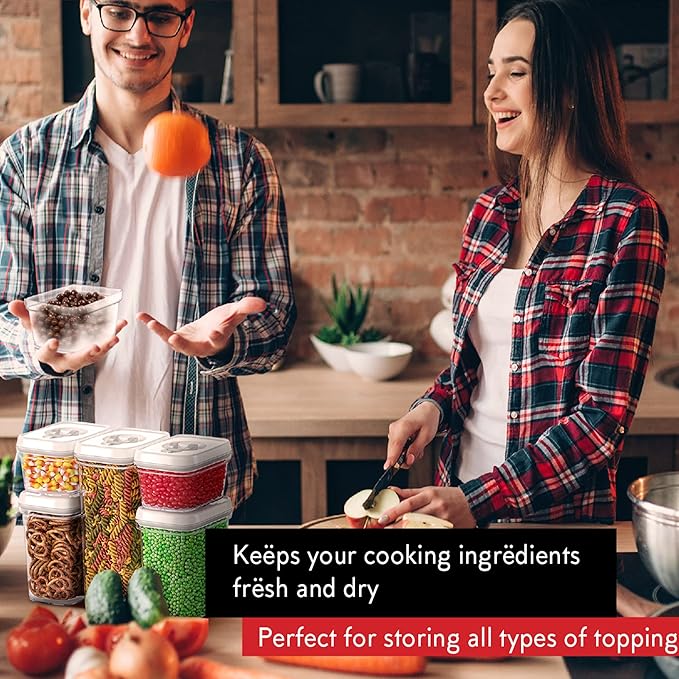 - Enjoy Your Meal With Fresh Food: Keep Your Foods Fresh with Our Easy to Use Airtight Lid-Lock Mechanism. No Dealing with Flimsy Pumps. Our Pantry Organizer Food Storage Containers Create an Airtight Seal by Simply Pushing Down the Ring on The Lid. Lift the Ring Up Whenever You Want to Open the Lid. The Airtight Seal Is So Secure You Can Store Liquids Without Ever Worrying About Leaks!