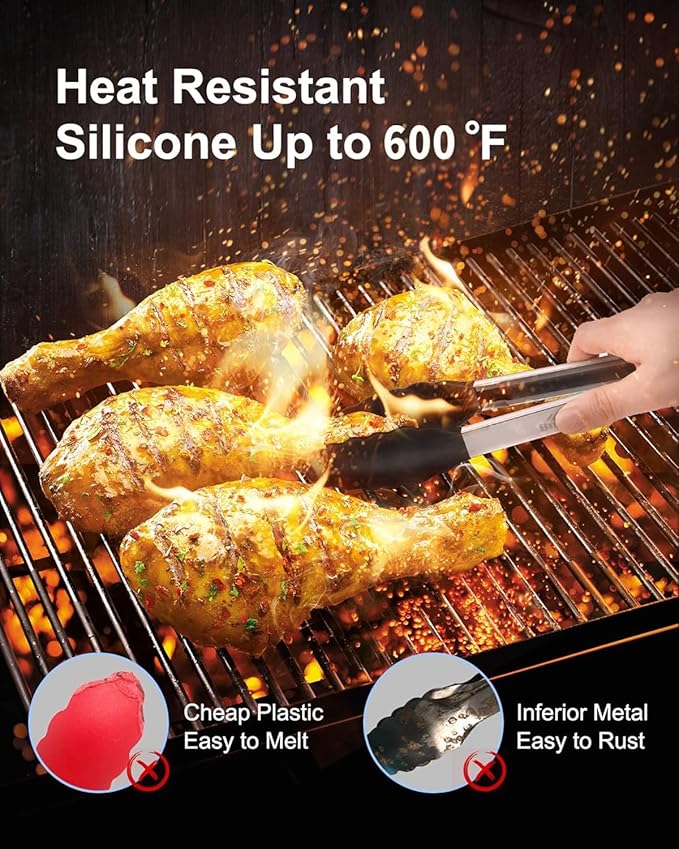 - SAFE AND HARMLESS TO YOUR FAMILY : We use the highest quality food-grade silicone for the cooking tong tips, which won't scratch your cookware. It has passed the safety test, and is also 100% BPA free and able to resist up to 600°F of heat. Easy to clean and dishwasher safe.
