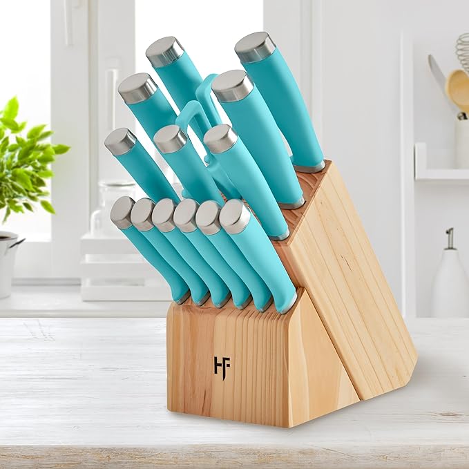 Hampton Forge Epicure True Aqua Knife Block Set, 15 Piece