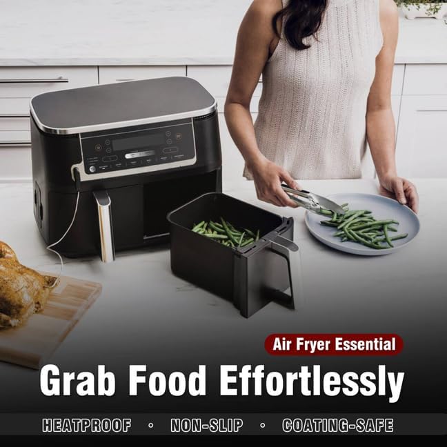 - ★ERGONOMIC HANDLE DESIGN AND HEAT RESISTANT-The handle is cushioned with non-slip silicone,great for thumb rest,and ensures handle grip and control.The metal tong head is super heat resistant.Easy to rinse, dishwasher safe and easy to clean.