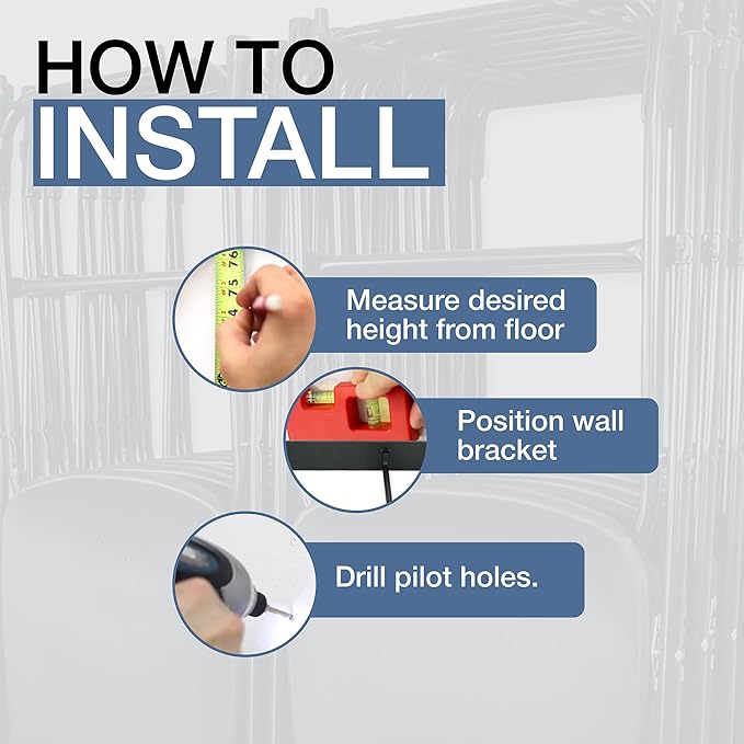 - Easy Wall Mount Installation – The folding chair wall mount design includes quality hardware and fits standard 16" wall stud spacing. No guesswork or complicated assembly – just mount and go! Perfect for DIY garage upgrades and garage organization setups.