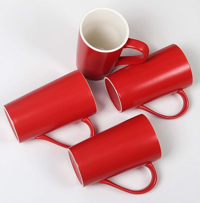 Smilatte 20 oz Large Coffee Mugs, M007 Plain Blank Tall Ceramic Cup with Handle for Dad Men, Set of 4, Red