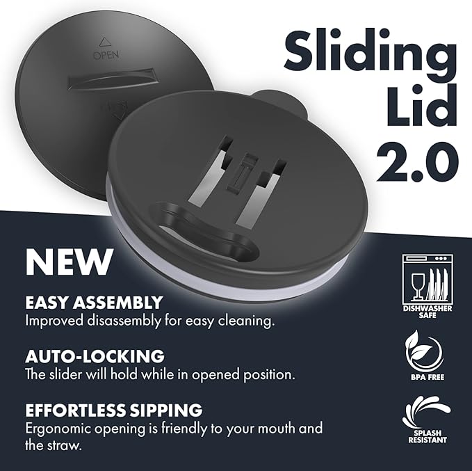 - SPECIAL LID DESIGN – The unique slider lid easily opens or closes with one finger. This silicone O-Ring spill-proof sliding lids seals off completely, making it spill proof for easy transportation and helps maintain the temperature in the travel coffee mug. The lid of the mugs is a DISHWASHER SAFE and with DISASSEMBLE feature for easy cleaning. Replacement lid is available.
