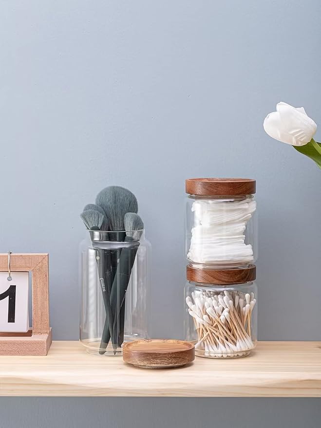 - HEALTHY GLASS CANISTERS - Our glass jars are made of sturdy, food-grade, and resistant borosilicate glass with a natural bamboo wood lid and silicone airtight ring. Lead-free, non-toxic and open flame heating safety without bamboo lid. You also can put them in the dishwasher and microwave safe.