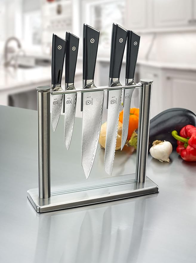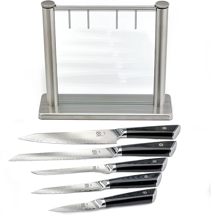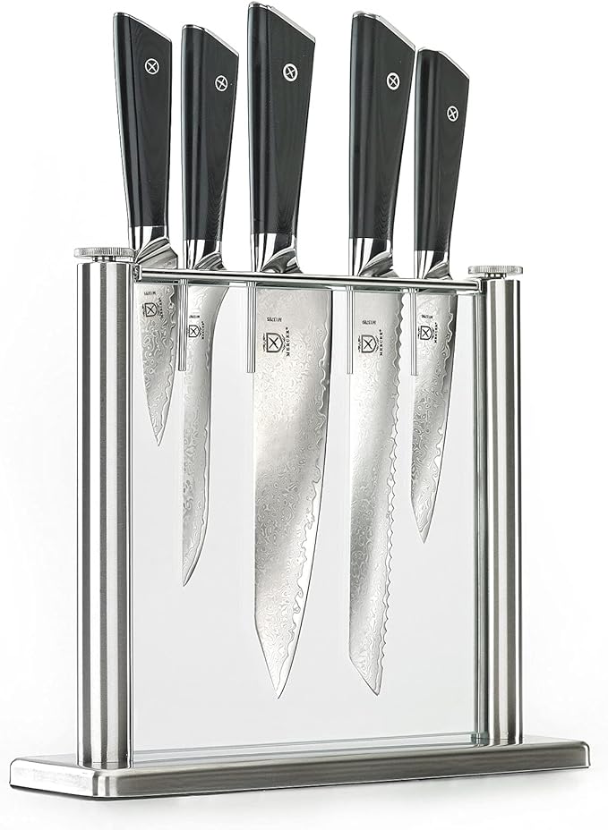 Mercer Culinary Premium Grade Super Steel 6-Piece Knife Set with Glass Block Stand, G10 Handles