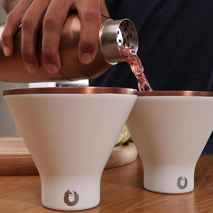 - Innovative Design By SNOWFOX: As the originators of vacuum-insulated double wall steel glasses made specifically for martinis, we’re delighted by their growing popularity. If you know martinis, you know they’re meant to be enjoyed at the iciest temperatures possible. Glass is not an ideal choice—it warms up contents by a degree a minute. Take your time drinking from our sleek glasses, as they keep cocktails at below-freezing temps until the very last sip. Makes a celebrated gift!