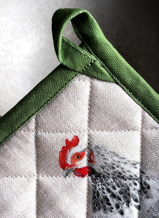 Maison d' Hermine Pot Holders Set 100% Cotton Heat Resistant Potholders 8" x 8" Hot Pads with Loop BBQ, Cooking, Baking, Grilling, Kitchen, Handling Hot Pans Spring/Summer (Pack of 2, Basse Cour)