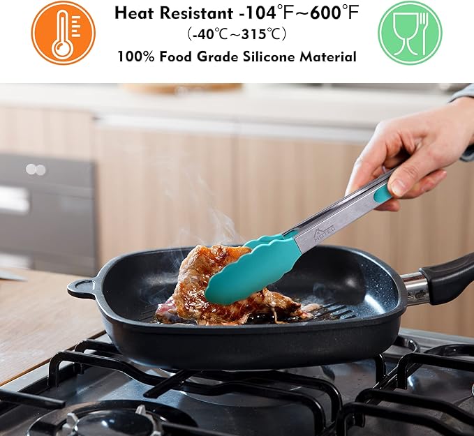 - EASY TO USE: The handle is cushioned with silicon, good for thumb rest and ensures good grip and control. The silicon tong tip is heat resistance and less prone to scratch the pan. Easy to rinse, dishwasher safe.