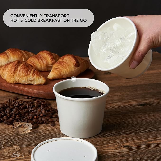 JOLLY PARTY 50pack 12oz Paper Soup Containers with Lids, Disposable Paper Food Cups, Ice Cream Cups, Food Storage with Lids, Microwavable and Freezer Safe, Suitable for Christmas Thanksgiving(White)