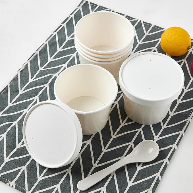 - Package Includes: You will get 50 pieces 12oz paper food containers,(50 pieces ice cream bowls and 50 pieces seal lids, ), a stackable design to save space, tight-fitting lids to ensure food freshness, meet your various needs