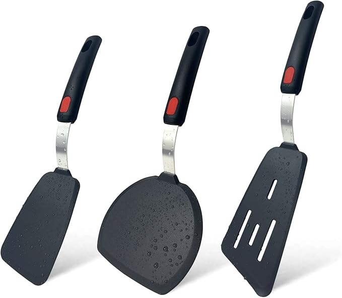 - This kitchen Utensils Set Include:Hexclad cookware/Medium and Wide Silicone Turner Spatulas-- heat-resistant spatulas set of 3 makes cooking flipping easy and fun.