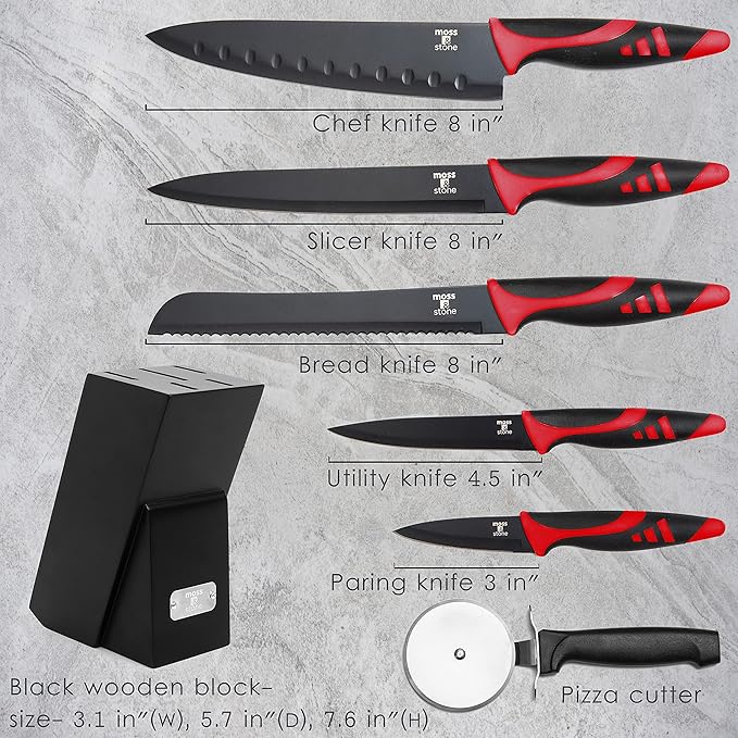 - Easy Slicing & Dicing: Moss & Stone stainless steel kitchen knife set makes slicing, chopping, and dicing easy while helping reduce accidents. All kitchen knives are dishwasher-safe for cleanup