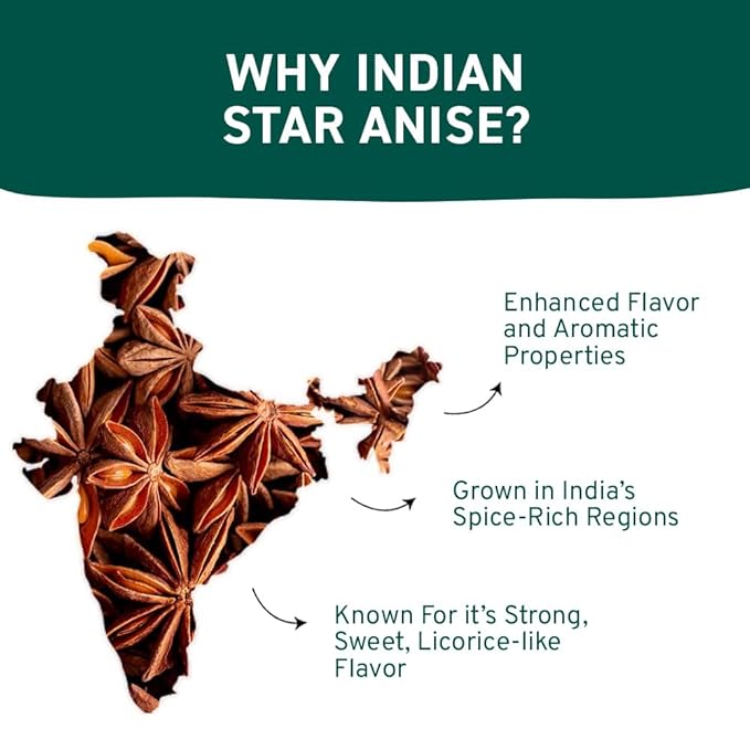 - PURE STAR ANISE- Made from highest and purest quality of ingredients, ethically sourced from prime harvest gardens of India. It contains no artificial flavors, colors or preservatives.