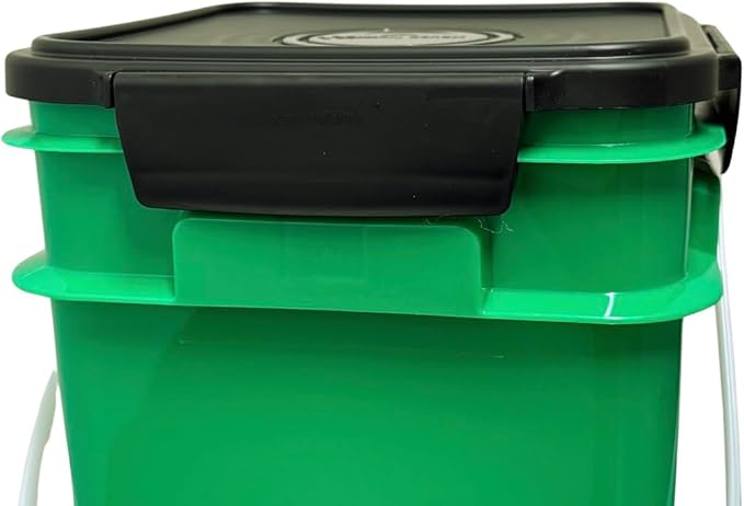 House Naturals 4 Gallon Square Food Grade Bucket Pail with Plastic Handles and Lid (Pack of 3) Made in USA containers (Green)