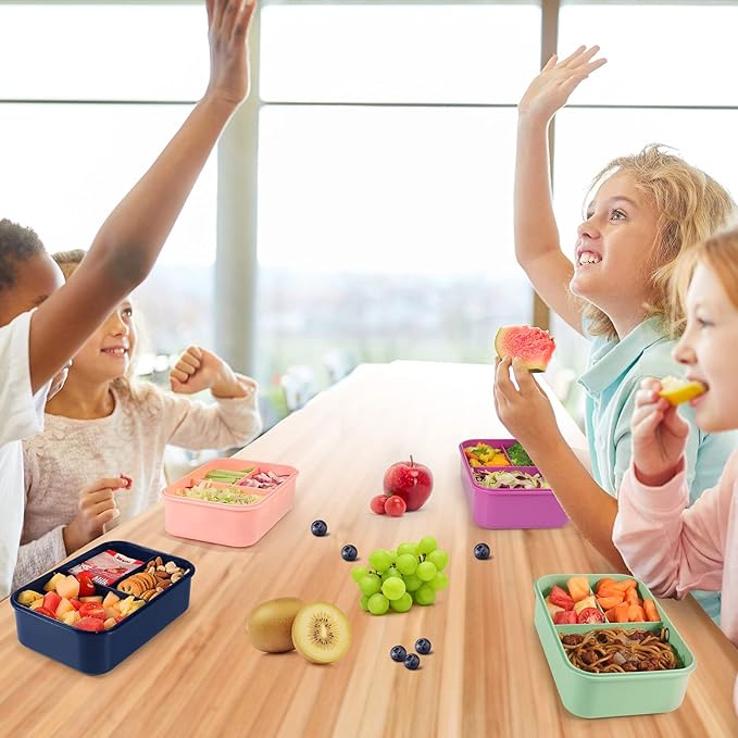 - PERFECT FOR EVERYBODY: The All-in-one lunch box is divided into 3 compartments. Each compartment is portioned perfectly to feed the appetite of both older children and adults for packing a healthy and balanced lunch for everybody. The built-in knife, fork, and spoon are always at hand for easy meals on-the-go.