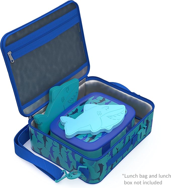 Bentgo Buddies Reusable Ice Packs - Slim Ice Packs for Lunch Boxes, Lunch Bags, and Coolers - Multicolored 4 Pack (Shark)