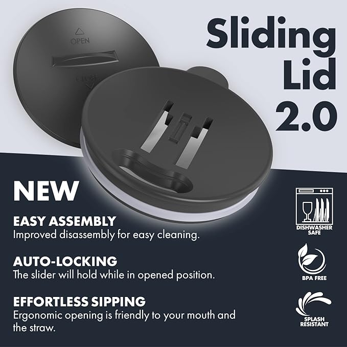 - SPECIAL LID DESIGN – The unique slider lid easily opens or closes with one finger. This silicone O-Ring spill-proof sliding lids seals off completely, making it spill proof for easy transportation and helps maintain the temperature in the travel coffee mug. The lid of the mugs is a DISHWASHER SAFE and with DISASSEMBLE feature for easy cleaning. Replacement lid is available.