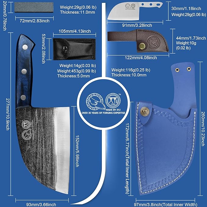 - 【XYJ Brand】Established in 1986, XYJ knives are a leading brand known for their ergonomic and mechanical lever-based design, focusing on providing superior cutting experiences. Our team is dedicated to creating high-quality knives with exceptional sharpness, simple design, great balance and practicality. XYJ knives are not only ideal for outdoor activities such as camping but serve as portable chef knife set for kitchen. Choose XYJ knives for outstanding cutting performance & comfortable handling