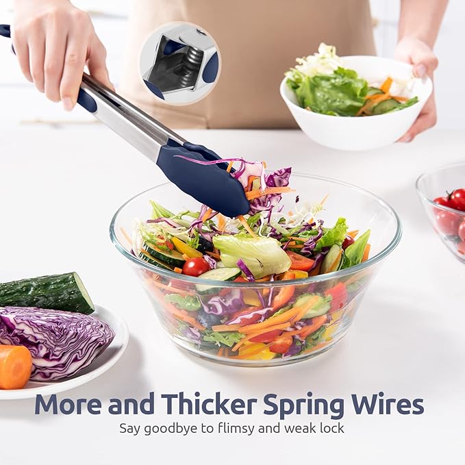 600ºF Heat Resistant Kitchen Tongs: U-Taste 12 inch Large Silicone Cooking Tong with Non Stick Rubber Tips & Silicon Coated 18/8 Stainless Steel Handle & Smooth Lock for Serving Grill (Midnight Blue)