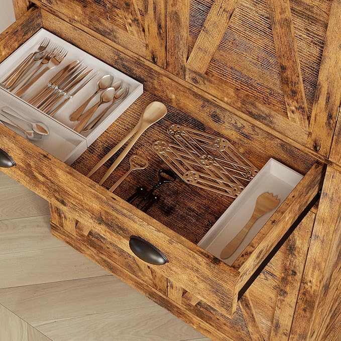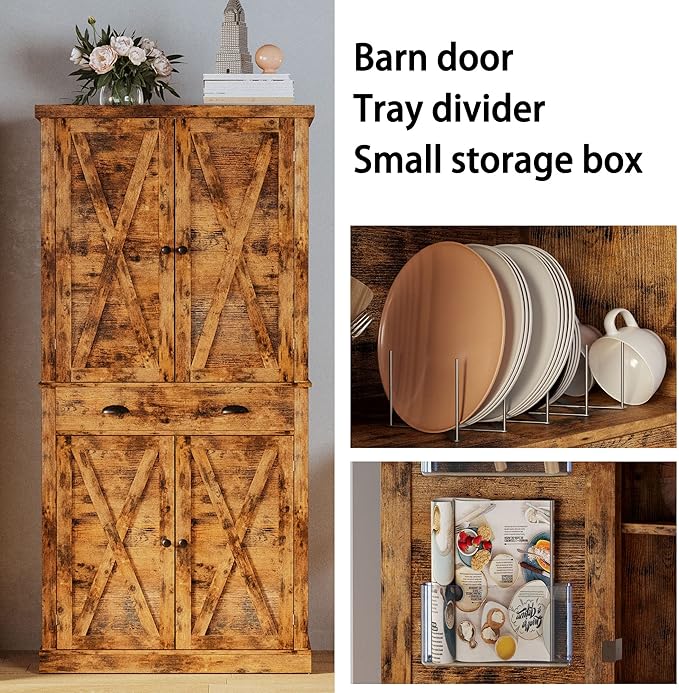 IRONCK Kitchen Pantry Storage Cabinet 72.6" H, with Barn Doors, Drawer, 4 Adjustable Shelves, Freestanding Cupboard for Dining Room Living Room, Laundry, Vintage Brown