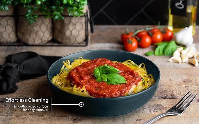 KooK Pasta Bowl, Salad Bowls, Soup, Serving Bowls, Ceramic, Large Capacity, Microwave & Dishwasher Safe, Set of 4, 40 Oz,(Dark Teal)
