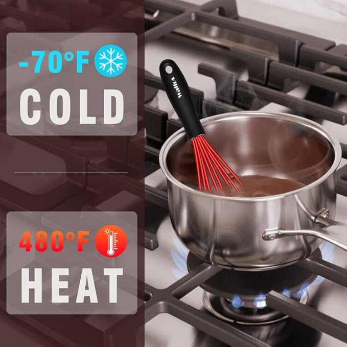 - Sturdy & healthy : Walfos whisk small is made of 1.1mm sturdy stainless steel, the wires are coated with 0.3mm food grade soft silicone, BPA Safe, healthy, reliable, rust-proof, corrosion-resistant, and lightweight. Easy to use and won't damage or scratch any of your pots, pans, bowls or other dishes while using it. The ultimate accessory for non-stick coating baking