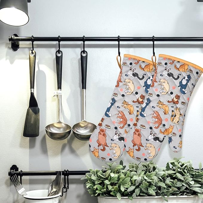 Oven Mitts Cotton Fashion Cute Cat Design 1pair Heat Resistant Oven Gloves Safe Cooking Baking Grilling Barbecue Machine Washable Pot Holders (Cat)