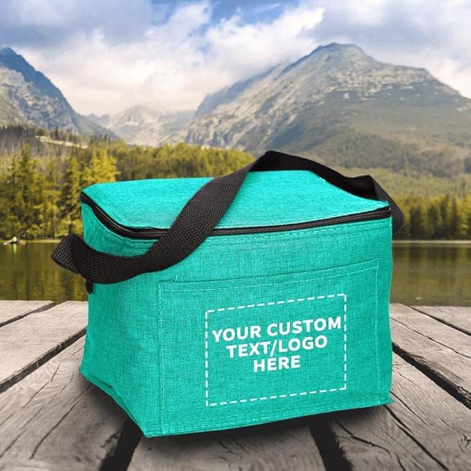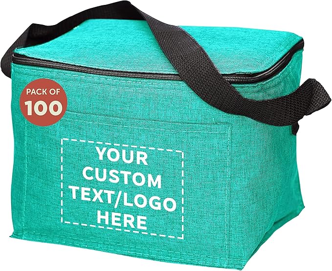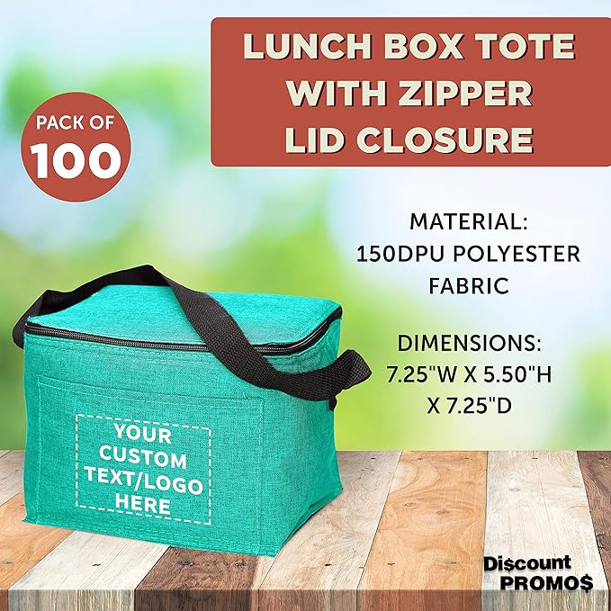 DISCOUNT PROMOS Custom Insulated Cooler Lunch Bag Set of 100, Personalized Bulk Pack - Perfect for Work, Travel, Outdoor Events - Mint