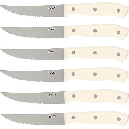 Oster Evansville 14 Piece Cutlery Kitchen Knife Block Set, Stainless Steel w/Linen White Handles - Cuchillos Para Cocina